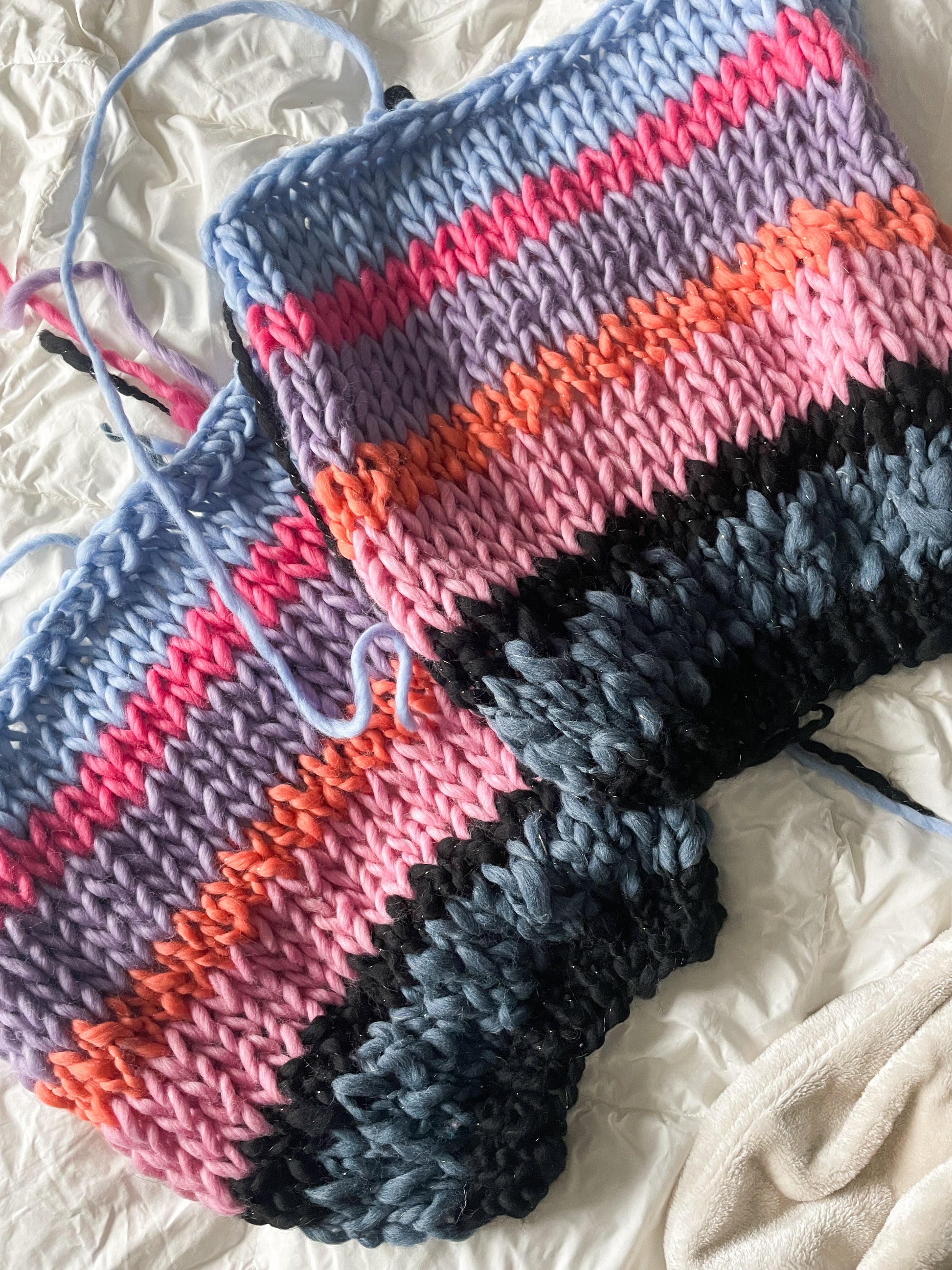 An oversized striped wool sweater perfect for cool mornings and nights and all the adventures in life. Fits size 6-8.