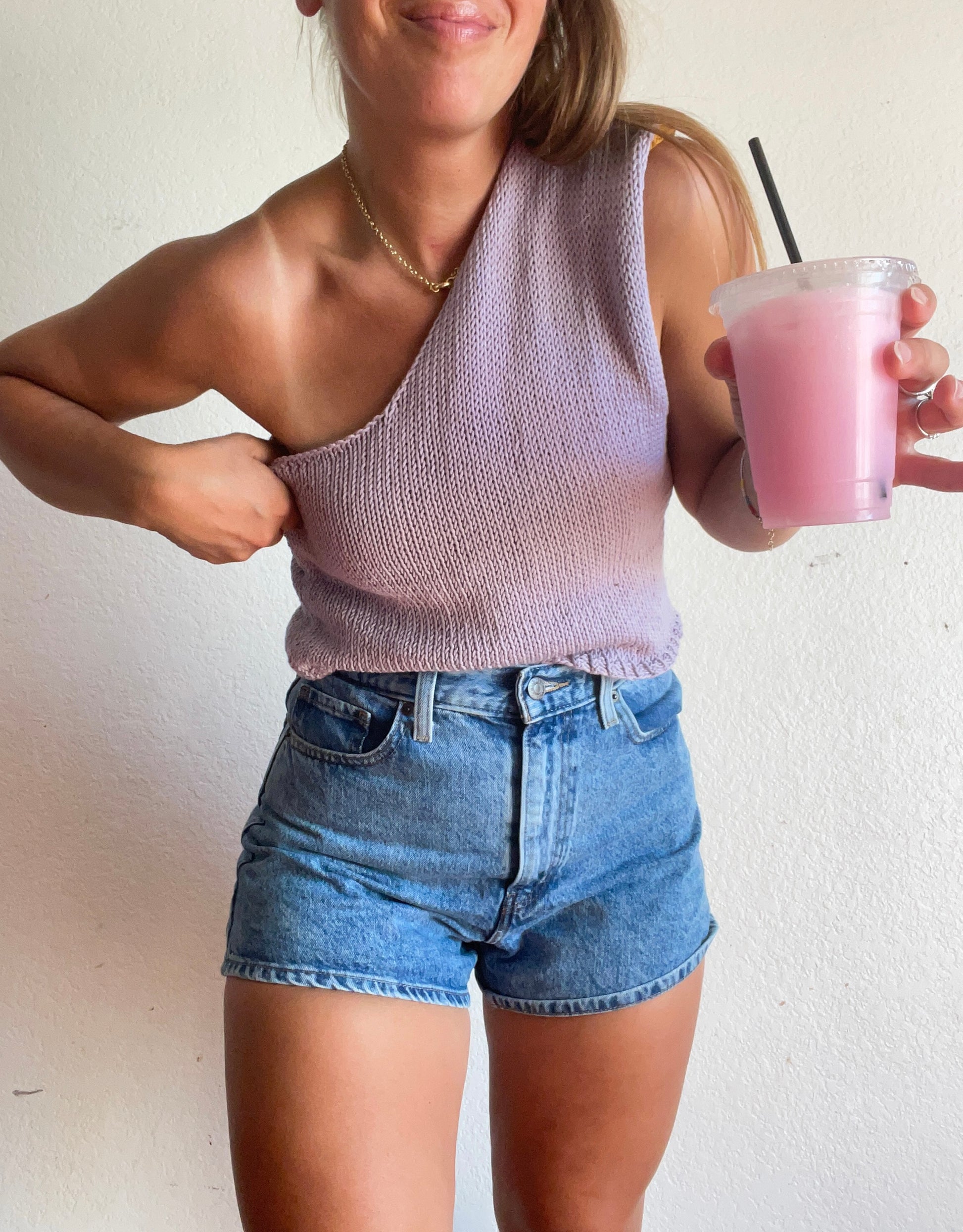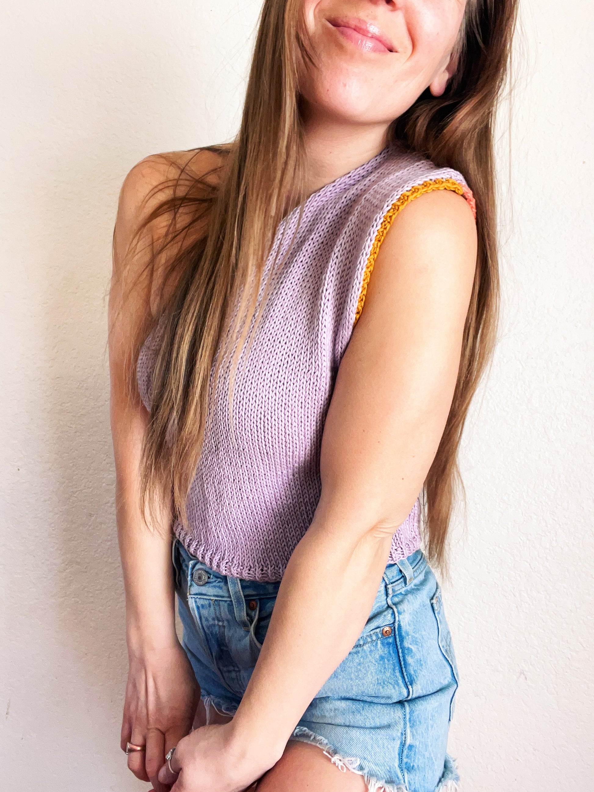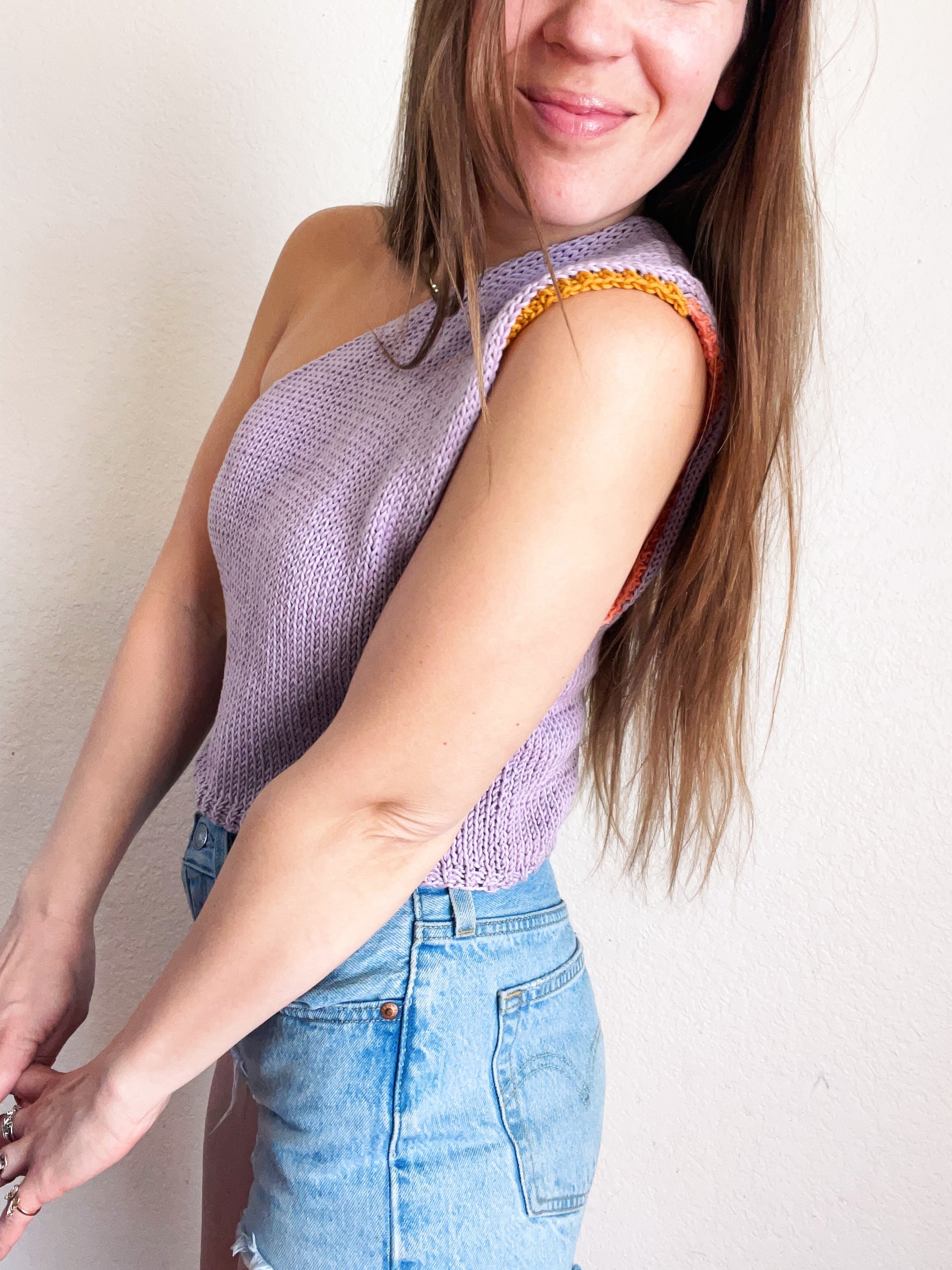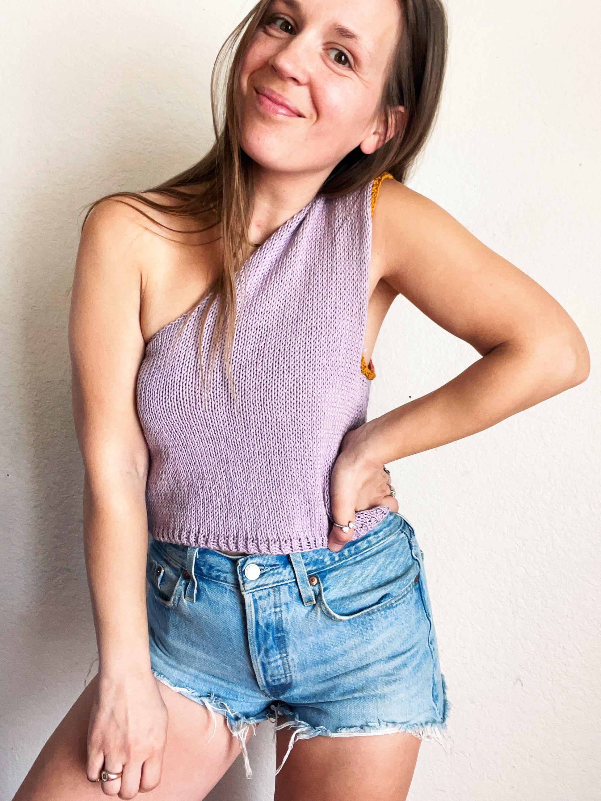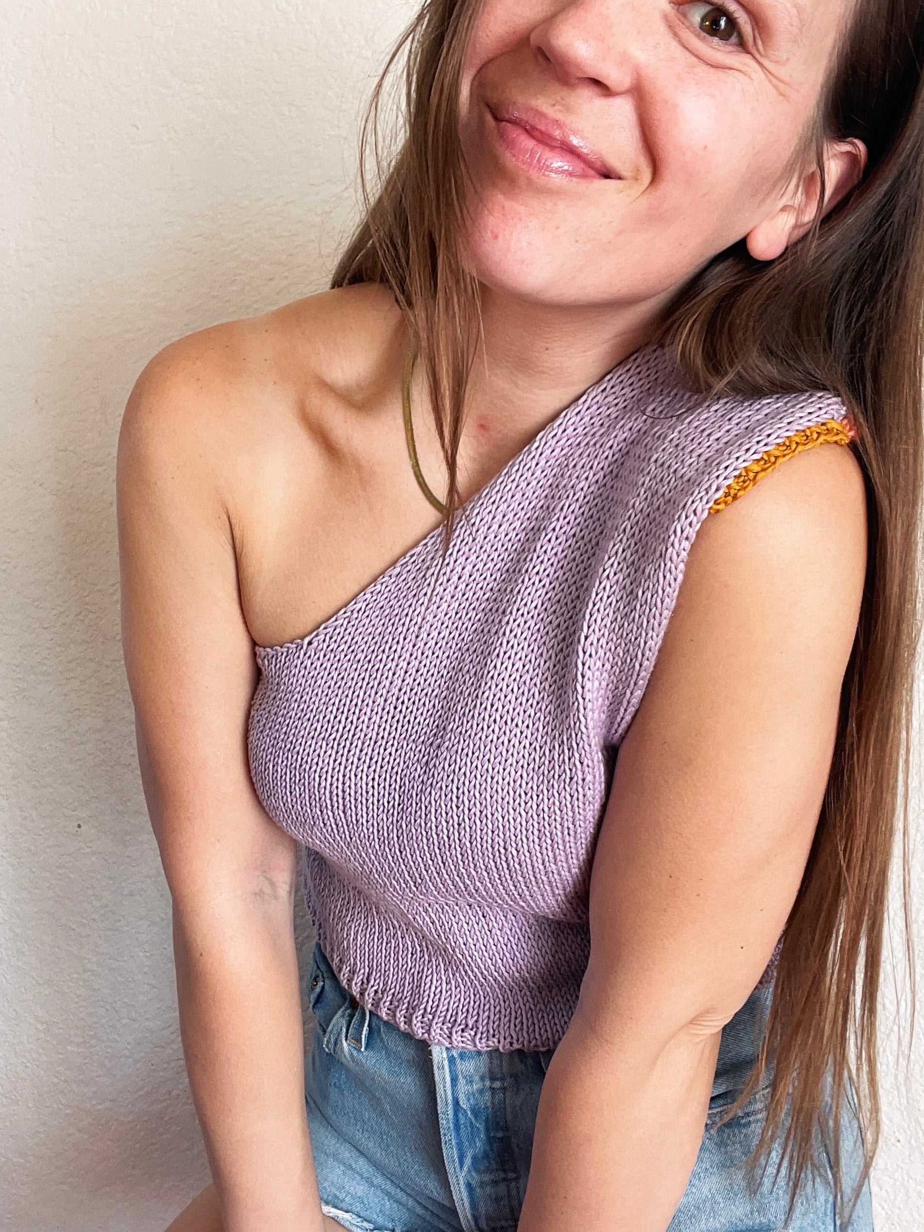Summer is right around the corner! I loooove cotton knits to celebrate the warmer weather. This season, slay with the one shoulder tank! It's quick, fun, and easy! Beginners, you got this! I used We Are Knitters "the cotton", but feel free to use any DK weight cotton.