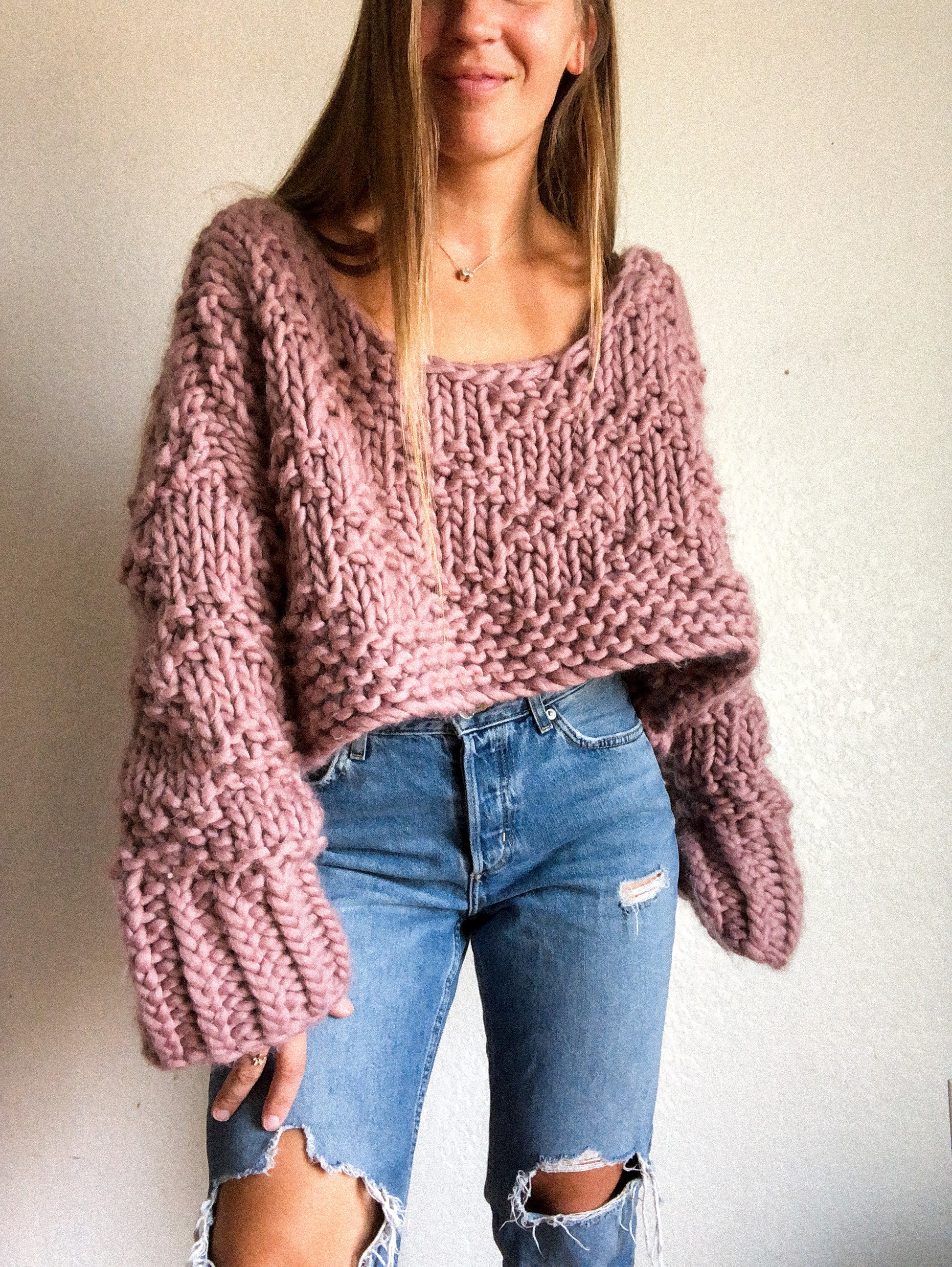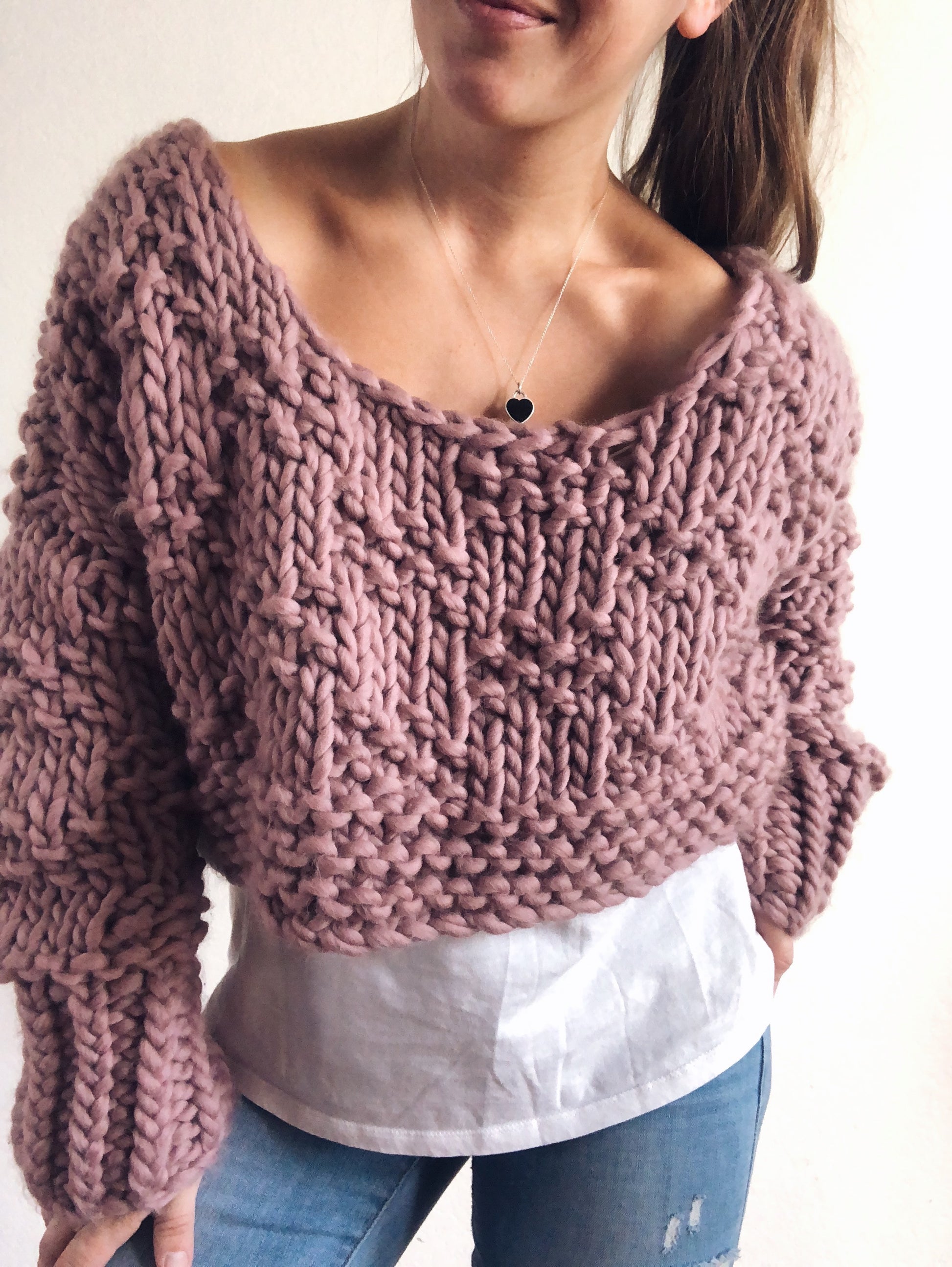 Need a quick sweater project? This is one of my favorite sweaters! A fast knit, textured look, a crop style to layer with long tanks or alone with high waisted leggings! It’s a relaxed and loose fit, a bit off the shoulder if you want! This is a one size pattern.
